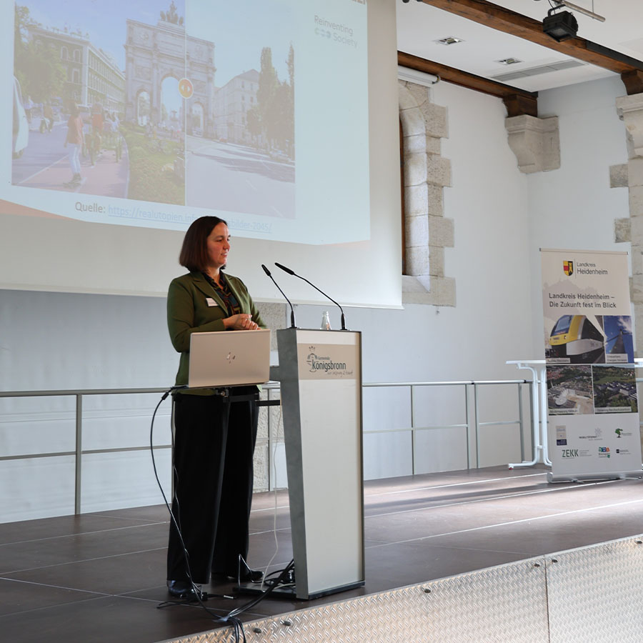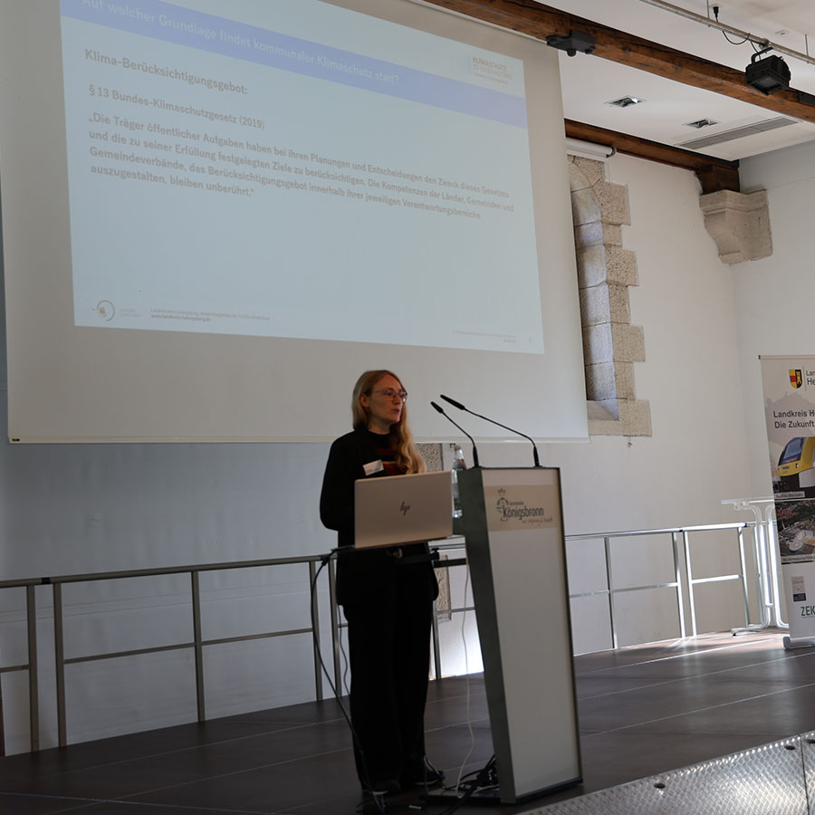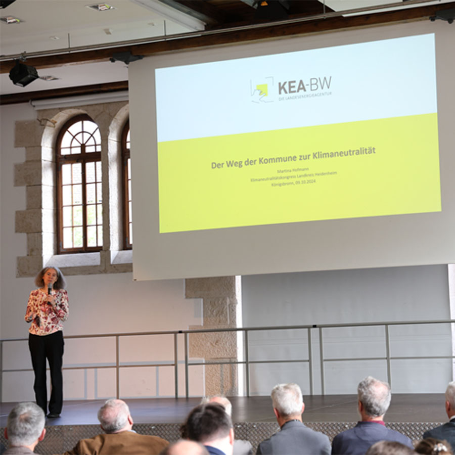Besondere Aufmerksamkeit erfuhren Praxisbeispiele für eine kommunale Klimaneutralität am Beispiel der Gemeinde Denzlingen. Am Beispiel dieser Gemeinde, die über ein Modellprojekt mit zusätzlichen Landesmitteln gefördert wird, konnten erfolgreiche Strategien zur Umsetzung von Klimaschutzmaßnahmen vorgestellt werden. Zudem gab es Einblicke in Förderprogramme, die Kommunen bei der Umsetzung ihrer Klimaziele unterstützen. Die Energiewende stand ebenfalls im Fokus des Klimaneutralitätskongresses. Experten diskutierten über die Rolle von Sanierungsgebieten, die Herausforderungen für Netzbetreiber und die Bedeutung der Elektromobilität für eine nachhaltige Mobilität. Neben dem Blick über den Landkreis und die Region hinaus, wurden auch die Unterstützung und Angebote vor Ort vorgestellt. Der Landkreis und das ZEKK stehen ihren Kommunen und Unternehmen bei Fragen zu Klimaschutz, E-Mobilität, Elektroinfrastruktur und Klimafolgenanpassung zur Seite und auch die IHK Ostwürttemberg informierte über ihre vielfältigen Angebote zur Unterstützung von Unternehmen bei der nachhaltigen Transformation.