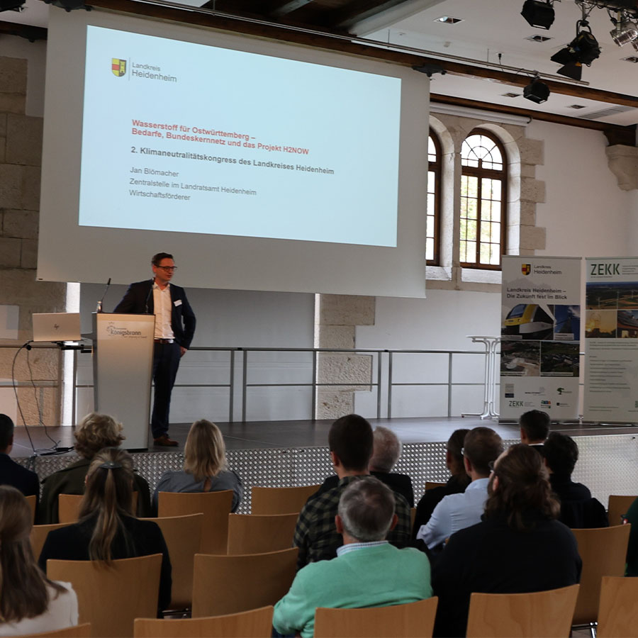 Der Landkreis Heidenheim hat gemeinsam mit dem Zentrum für nachhaltige Energieversorgung, Klimaschutz und Klimafolgenanpassung GmbH – kurz ZEKK in der Hammerschmiede in Königsbronn den zweiten Klimaneutralitätskongress veranstaltet. Unter reger Beteiligung von Kommunalpolitikern und kommunalen Mitarbeitern, Unternehmen, Handwerksbetrieben, Wissenschaftlern und interessierten Bürgerinnen und Bürgern wurden innovative Lösungen und Best-Practice-Beispiele für eine nachhaltige Zukunft diskutiert. Der Klimaneutralitätskongress bot ein vielfältiges Programm am Vormittag für die Kommunalverwaltung und -politik und am Nachmittag für Unternehmen aus der Region. Renommierte Experten wie Frau Prof. Dr.-Ing. Martina Hofmann von der KEA-BW und Herr Hannes Bäuerle, Landesvorstand der Architektenkammer Baden-Württemberg, gaben Einblicke in aktuelle Entwicklungen und Herausforderungen im Bereich Klimaschutz und Klimafolgenanpassung.